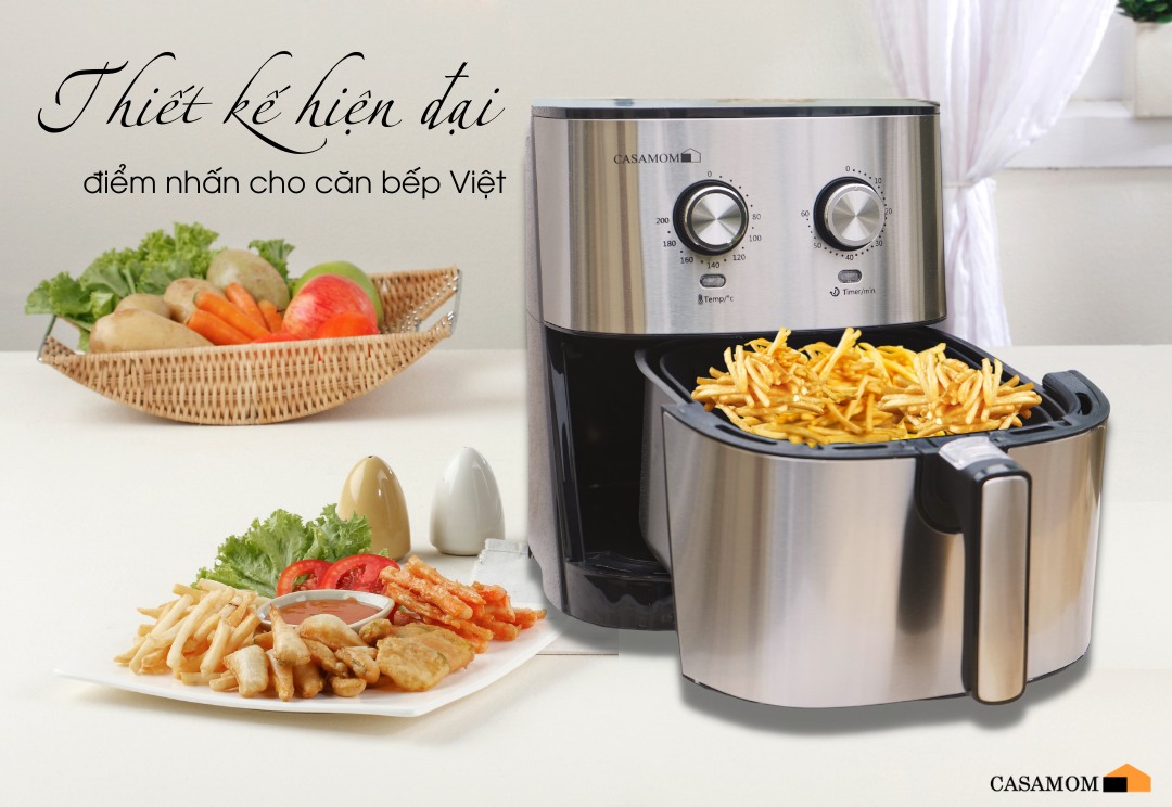 Nồi chiên Casamom tiện dụng an toàn và cực sang. Thiết kế 7L nhưng rất thon gọn tinh tế sẽ đem lại không gian bếp hoàn hảo.