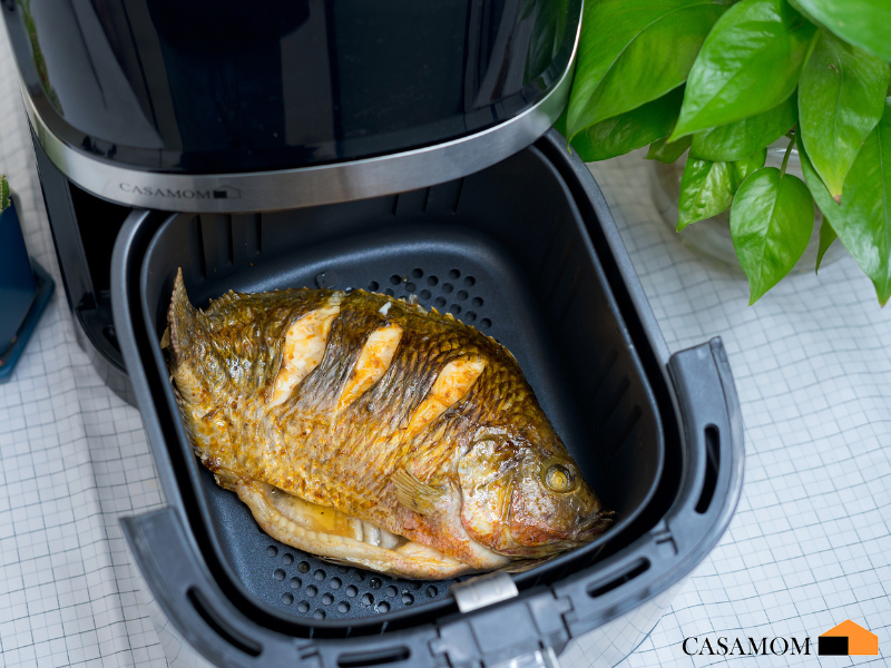 Chiên nướng món ăn bằng nồi chiên không dầu giúp món ăn chín vàng đều, khô ráo và lành mạnh hơn cho sức khỏe người sử dụng.