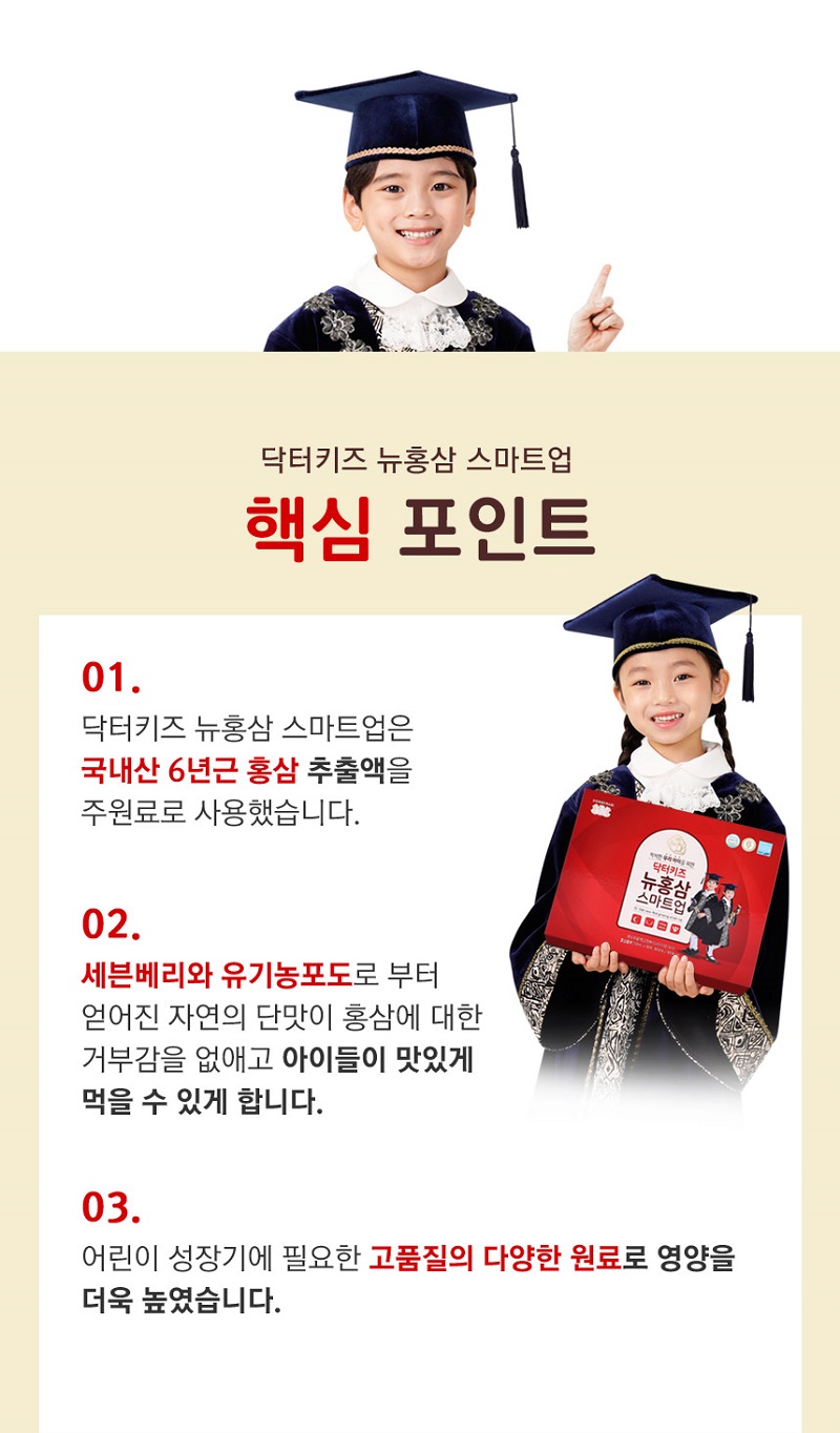 Nước hồng sâm trẻ em Gomsemari Ba Con Gấu Hàn Quốc - Dr.Kids New Red Ginseng Smart Up là sản phẩm bổ sung dinh dưỡng và tăng cường sức khỏe dành cho trẻ nhỏ. Sản phẩm đạt chứng nhận quản lý an toàn thực phẩm HACCP của Bộ an toàn thực dược phẩm và được bào hộ bởi tập đoàn Samsung Hàn Quốc.