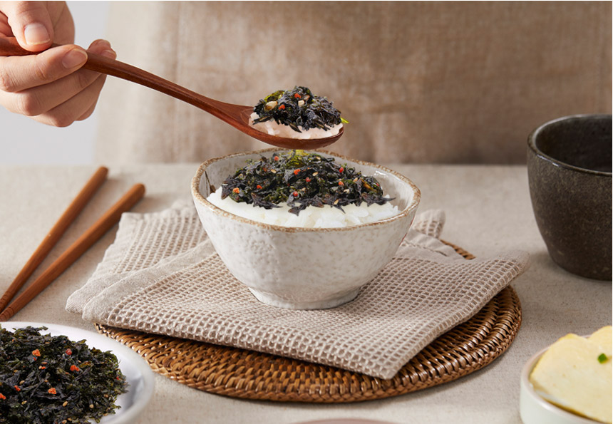 Trang Trí Món Ăn: Lá Kim Vụn hoặc Rong Biển Vụn Trộn Mè thích hợp để trang trí các món ăn như sushi, salad, hay các món truyền thống Hàn Quốc như bibimbap, kimchi bokkeumbap, giúp tăng thêm hương vị và màu sắc.