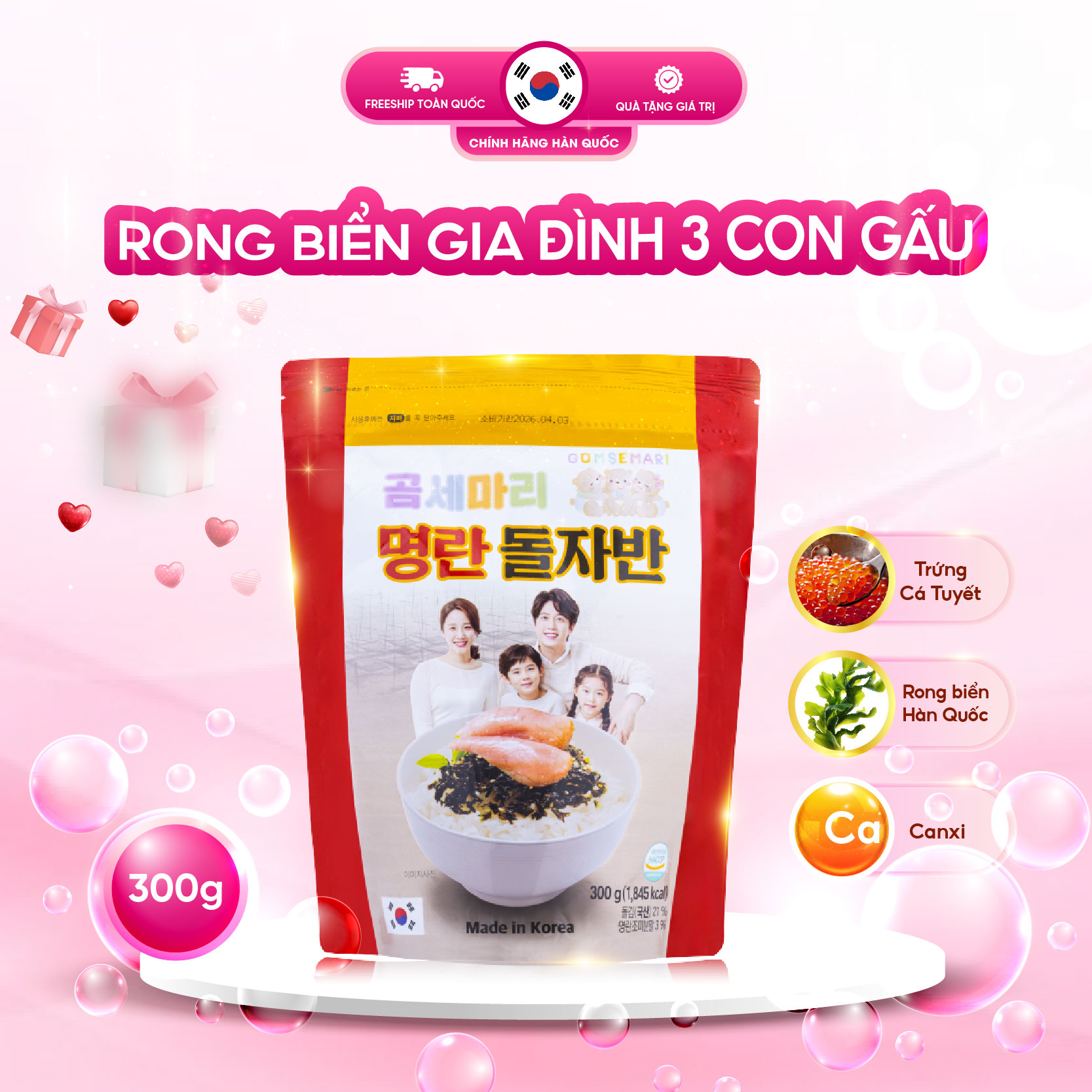 Rong biển Gia Đình 3 Con Gấu – Gấp đôi dinh dưỡng, trọn vẹn vị ngon Hàn Quốc