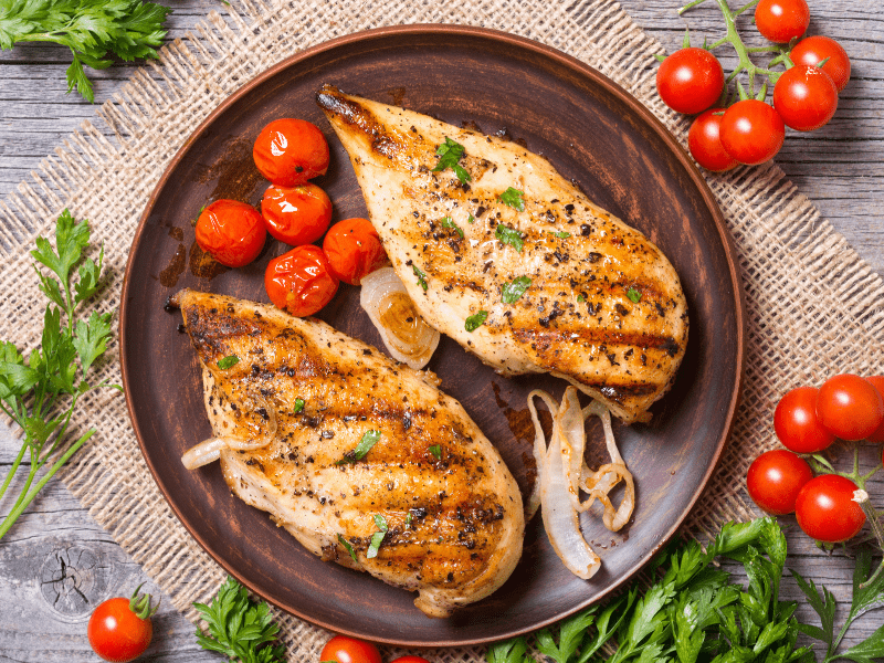 Thịt gà, đặc biệt là ức gà rất được nhiều người yêu thích bởi hàm lượng chất béo không bão hòa ít hơn so với các loại thịt khác, do đó thịt gà không chỉ là món ăn dinh dưỡng hàng ngày, nó còn có trong thực đơn ăn kiêng của rất nhiều người. Không chỉ vậy, trong thịt gà có chứa một loại protein được gọi là carnosine - giúp làm chậm quá trình biến đổi collagen, từ đó giúp tăng đồ đàn hồi cho da, giúp da căng mịn. Cổ gà, sụn gà cung cấp một lượng collagen phong phú được sử dụng trong việc điều trị viêm khớp.